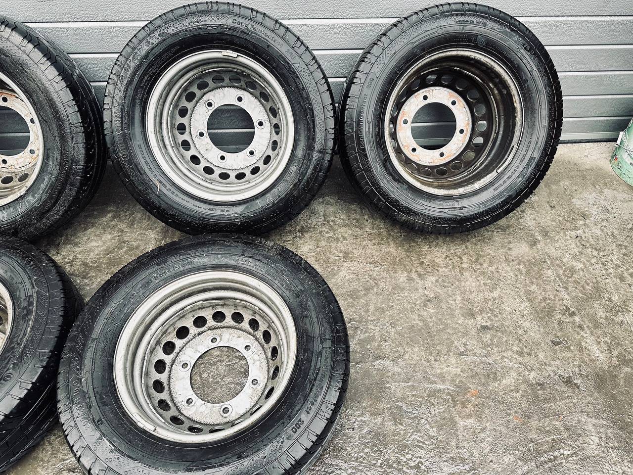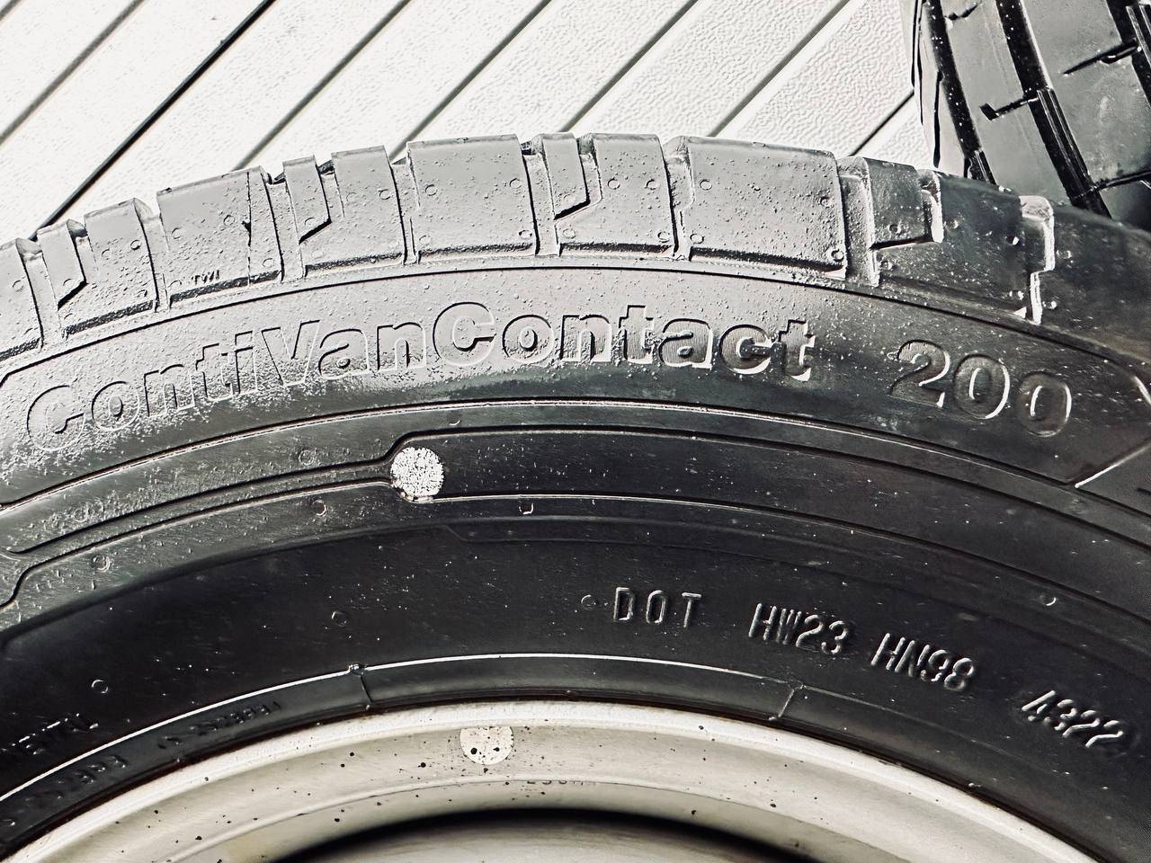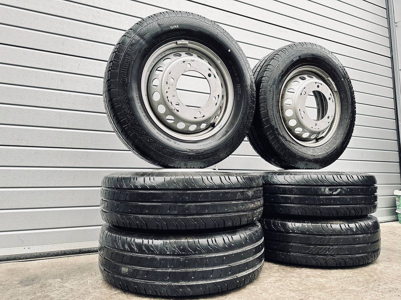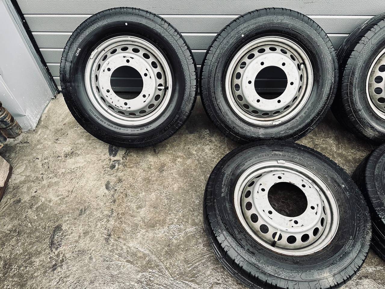Комплект колес R16x5.5 6x205 (Continental ContiVanContact 200 205/75) R16, ширина обода: 5.5, PCD 6x205 мм, DIA 161 мм, ET 61 мм. Шины: грузовые, летние, 2022, остаточная высота: 10мм. Mercedes-Benz Sprinter W907/W910 (2018 - 2025)