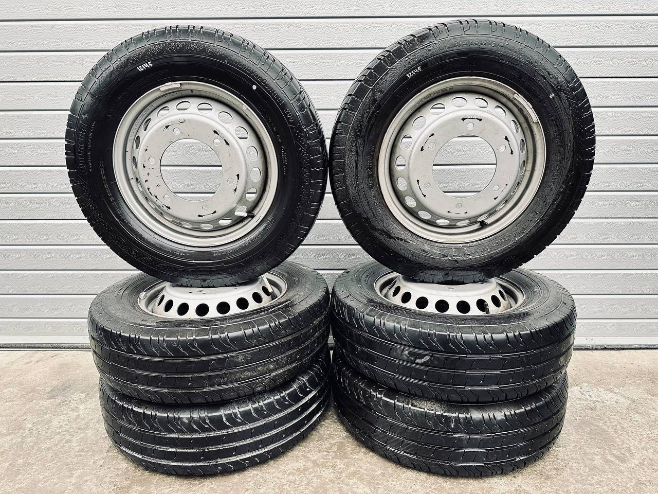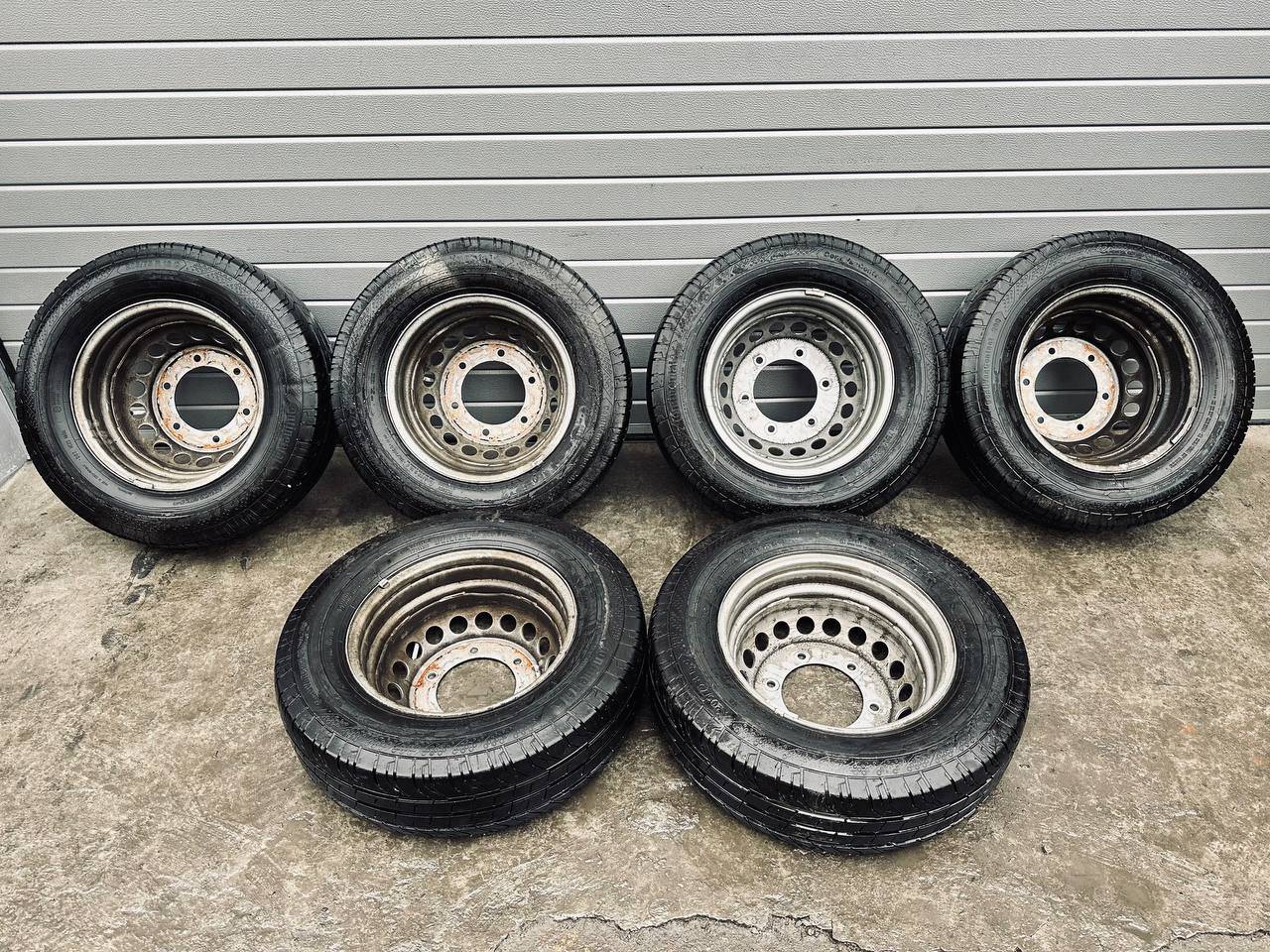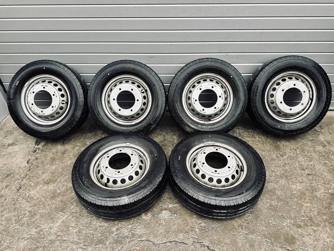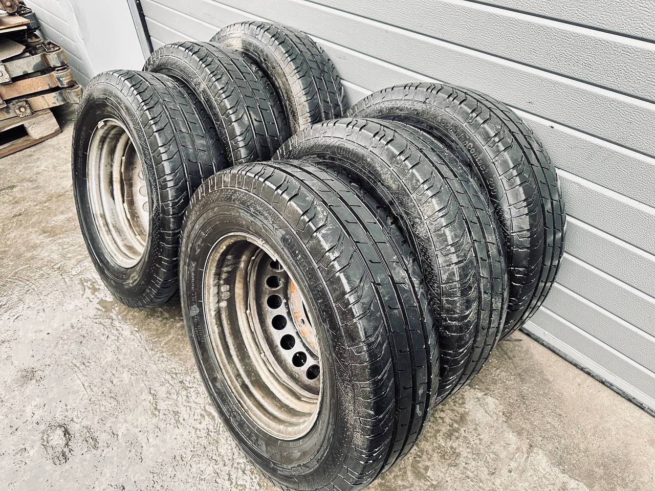 Комплект колес R16x5.5 6x205 (Continental ContiVanContact 200 205/75) R16, ширина обода: 5.5, PCD 6x205 мм, DIA 161 мм, ET 61 мм. Шины: грузовые, летние, 2022, остаточная высота: 10мм. Mercedes-Benz Sprinter W907/W910 (2018 - 2025)