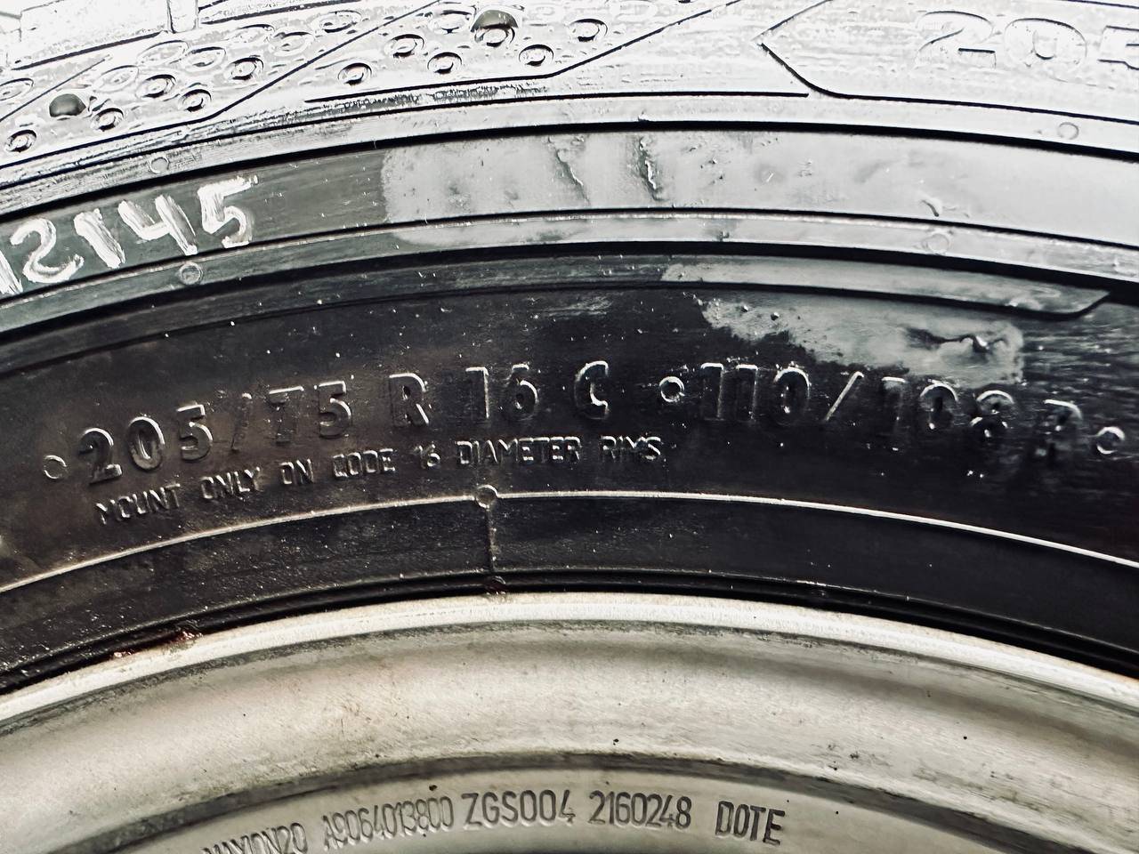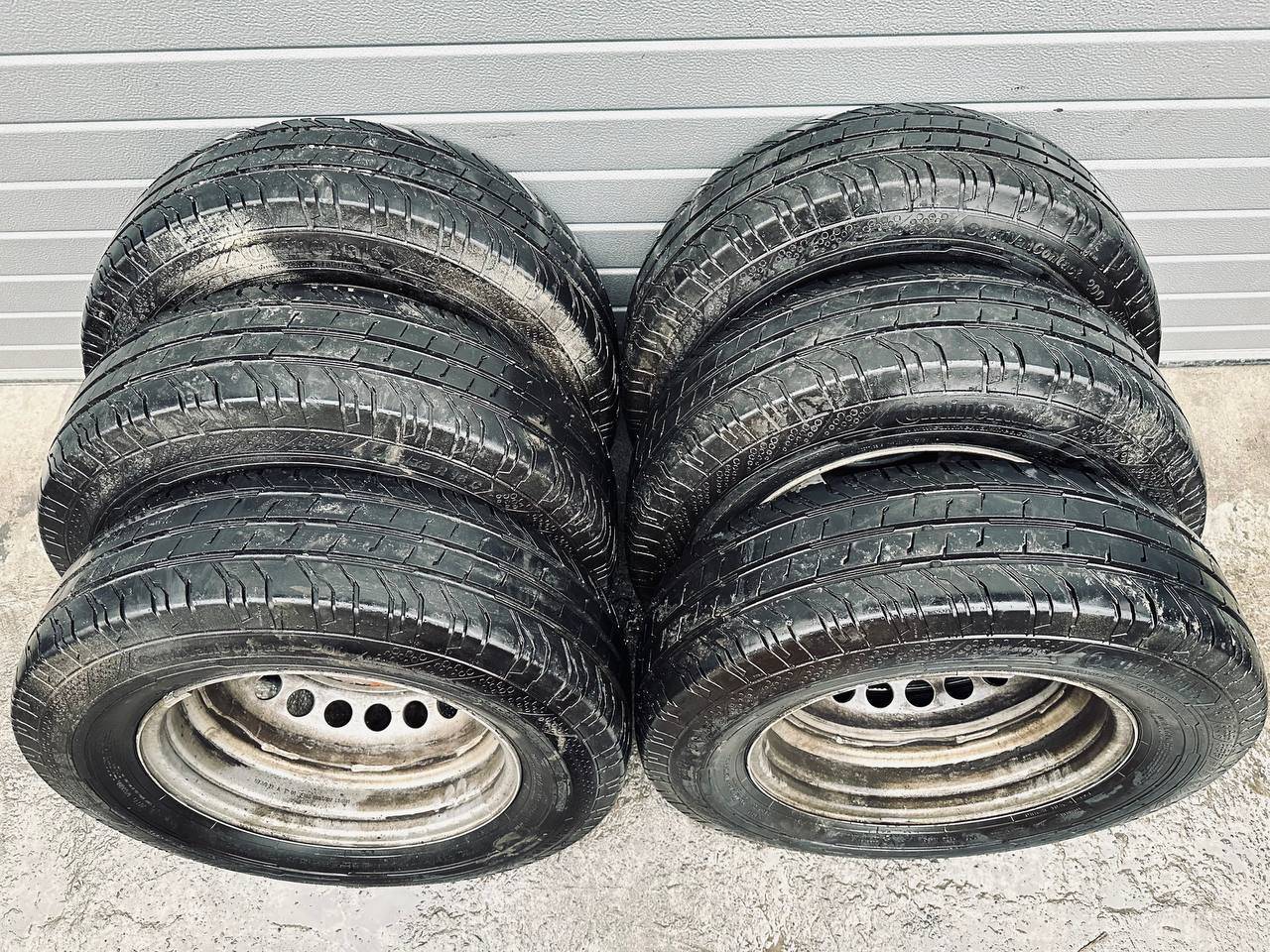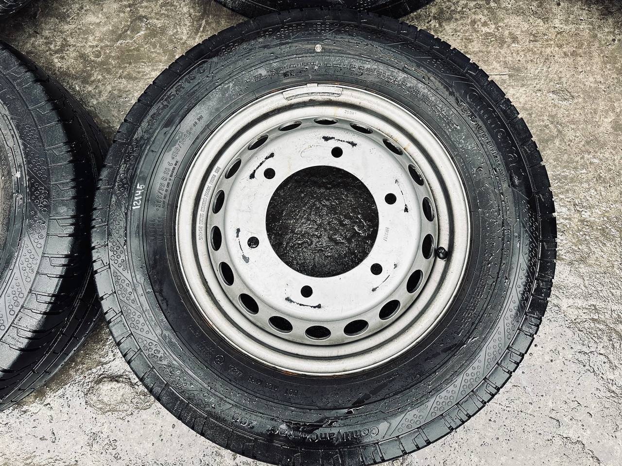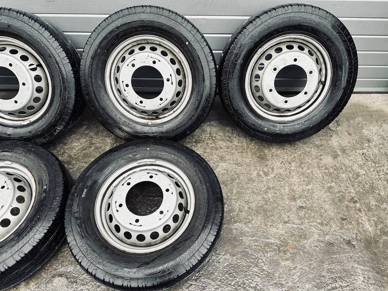 Комплект колес R16x5.5 6x205 (Continental ContiVanContact 200 205/75) R16, ширина обода: 5.5, PCD 6x205 мм, DIA 161 мм, ET 61 мм. Шины: грузовые, летние, 2022, остаточная высота: 10мм. Mercedes-Benz Sprinter W907/W910 (2018 - 2025)
