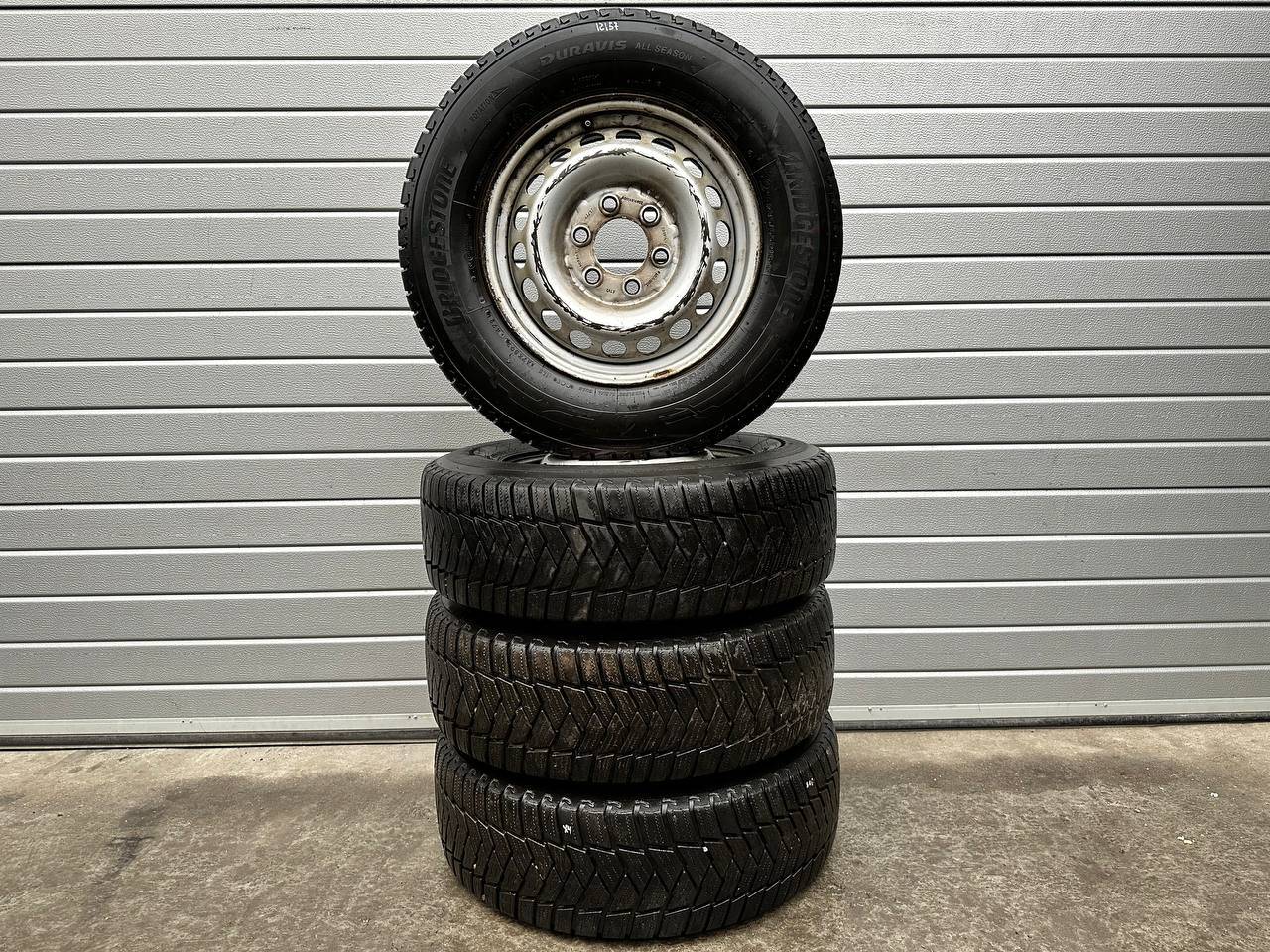 Комплект колес R16x6.5 6x130 (Bridgestone Duravis all season 235/65) R16, ширина обода: 6.5, PCD 6x130 мм, DIA 84.1 мм, ET 54 мм. Шины: грузовые, зимние, 2021, остаточная высота: 10мм. Mercedes-Benz Sprinter W906 (2006 - 2014)