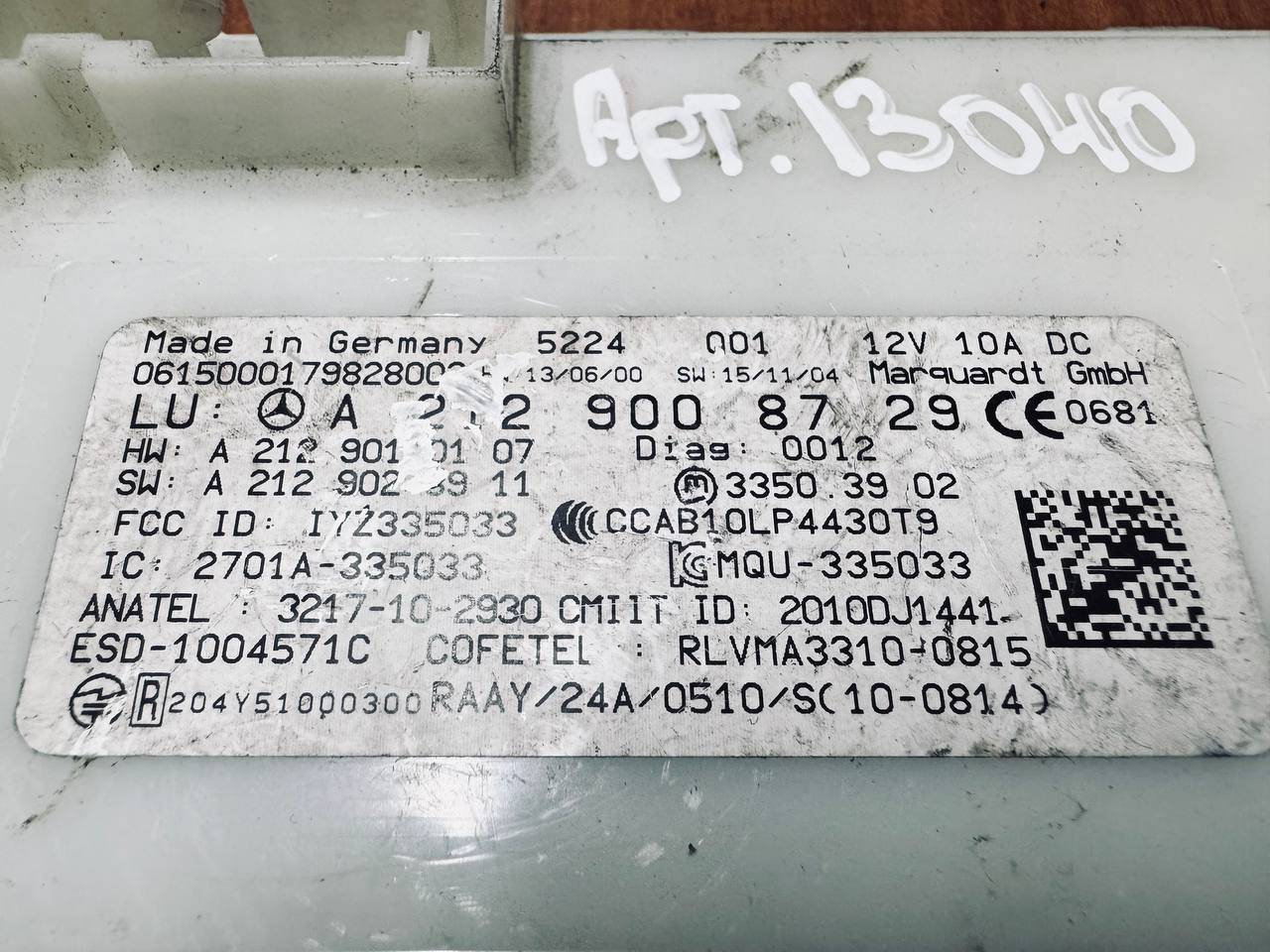 | Номер запчасти | A2129008729, A2129010107, A2129023911 |
