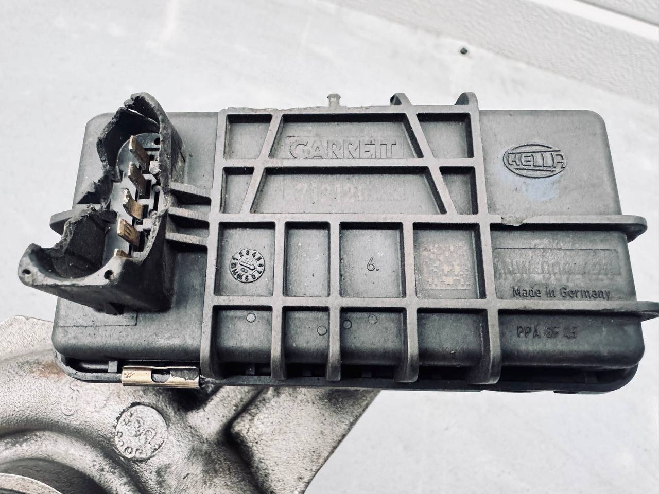 Примечание: оригинал б/у GARRETT. Подломано крепление фишки на крышке актуатора. Пины целые.