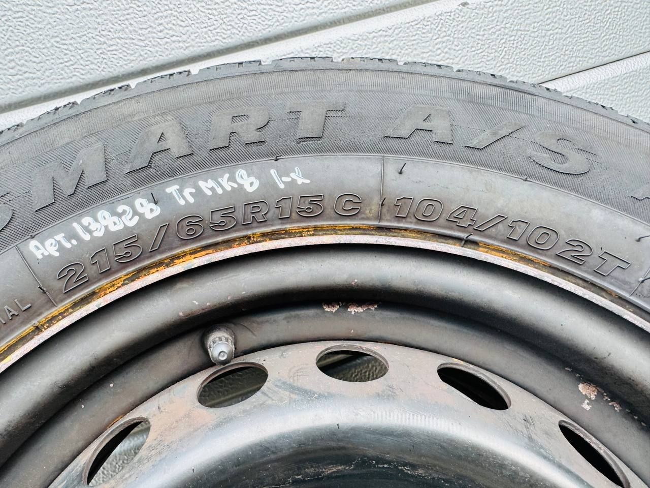 Колесо R15x6.5 5x160 (Maxxis VanSmart A/S AL2 215/65) R15, ширина обода: 6.5, PCD 5x160 мм, DIA 65.1 мм, ET 60 мм. Шины: грузовые, зимние, 2017, остаточная высота: 10мм. Ford Transit 8 (2013 - 2019)