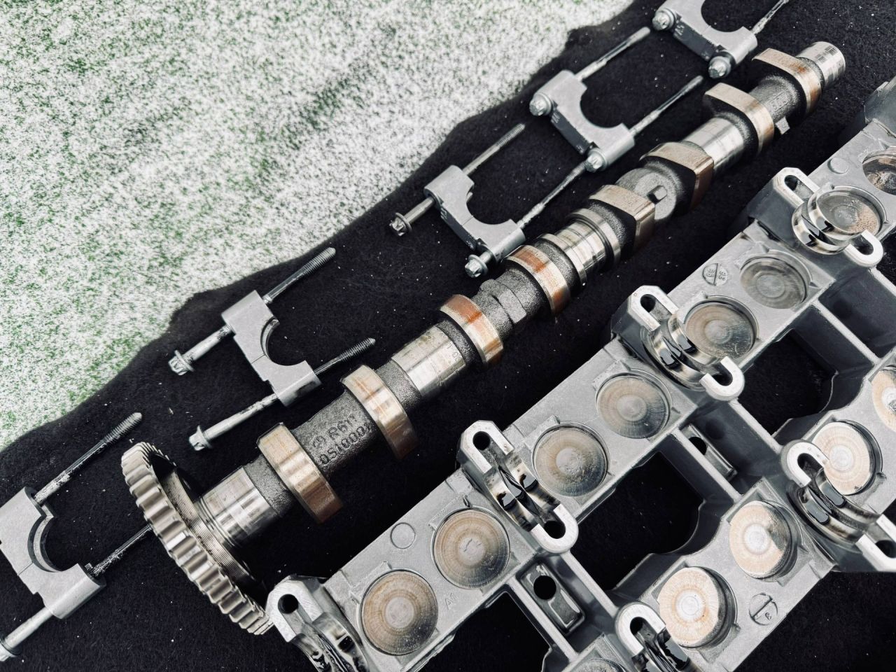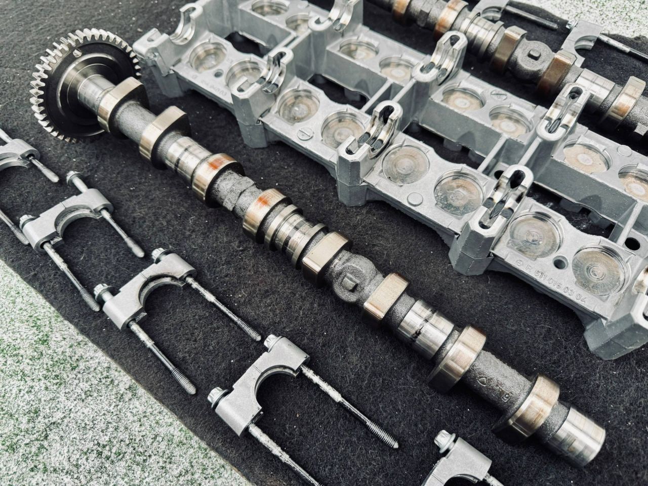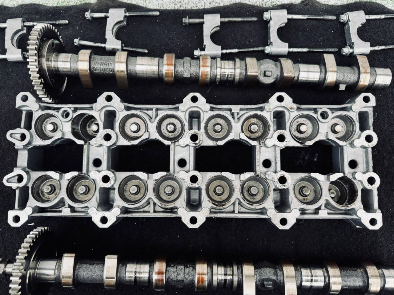 Постель распредвалов в сборе с распредвалами, бугелями и гидрокомпенсаторами